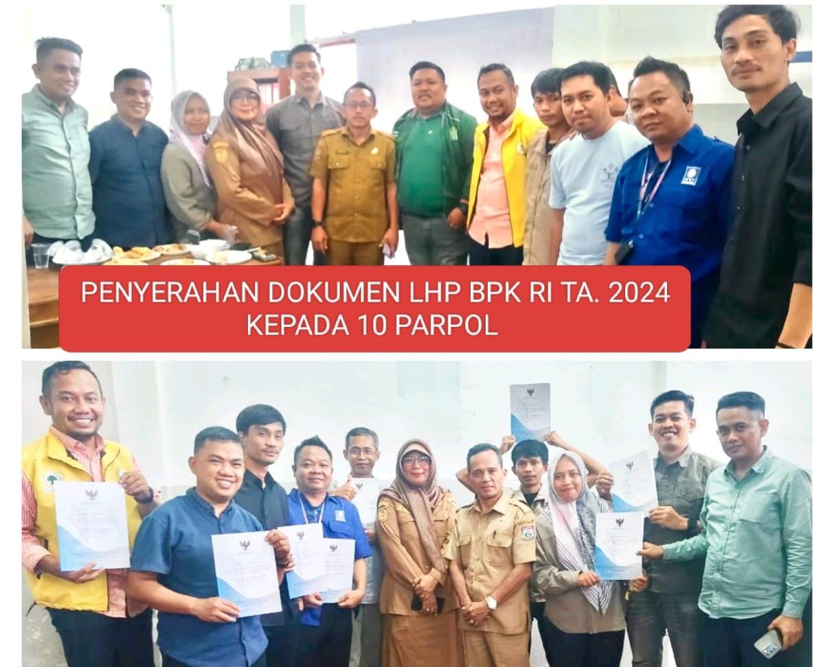 Badan Kesbangpol Provinsi Sulawesi Barat Serahkan Dokumen Hasil Audit BPK RI ke 10 Partai Politik