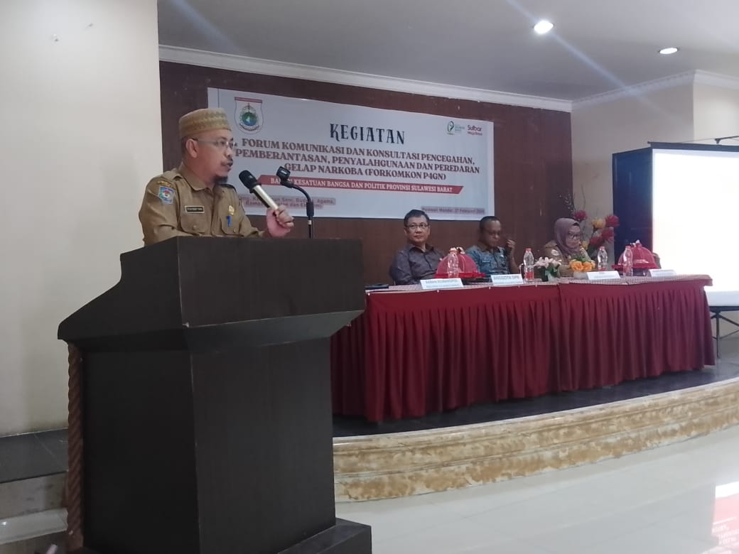 Plt Kepala Badan Kesbangpol Prov.Sulawesi Barat Muhammad Yusuf Tahir, menyampaikan apresiasi kepada seluruh perserta yang hadir , apalagi Narkoba menjadi masalah dan tanggung jawab kita bersama.