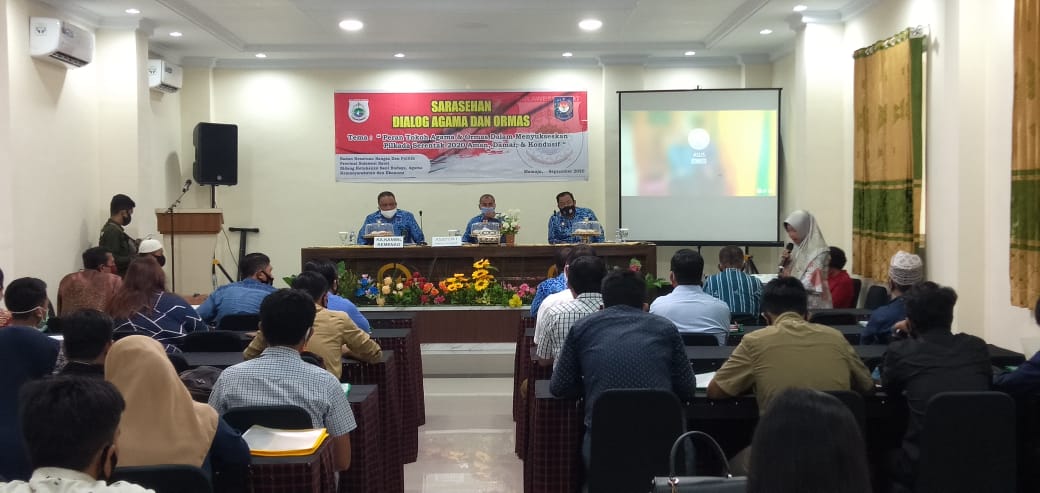 Mamuju, salah satu kunci kesuksesan pilkada serentak yang akan berlangsung di Sulawesi Barat nanti adalah berfungsinya peran Tokoh agama serta Organisasi Kemasyarakatan sebagai sosok figur dan sebuah komunitas di masyarakat yang dapat meredam segala potensi konflik menjelang pelaksanaan pilkada serentak, oleh karena itu Badan Kesatuan Bangsa dan Politik Provinsi Sulawesi Barat menyelenggarakan Serasehan Dialog Agama dan Ormas dengan tema “Peran Tokoh Agama dan Ormas dalam mensukseskan Pilkada Serentak 2020 Aman Damai dan Kondusif” yang diikuti oleh para tokoh agama, ormas dan LSM berjumlah 40 orang di Hotel Grand Putra Mamuju, Kamis 17 September 2020.